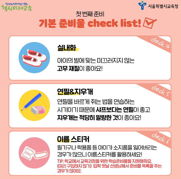 우리 아이의 첫 초등학교 입학을 앞두고 어떤 준비를 해야 할지 고민되시죠? 서울시교육청의 가이드를 참고하여 입학 준비에 도움을 줄 몇 가지 팁을 정리했습니다.